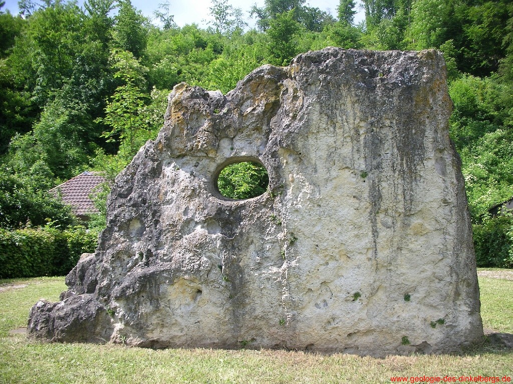 Diese Muschelkalkplatte mit ovalem Loch (Seelenloch)