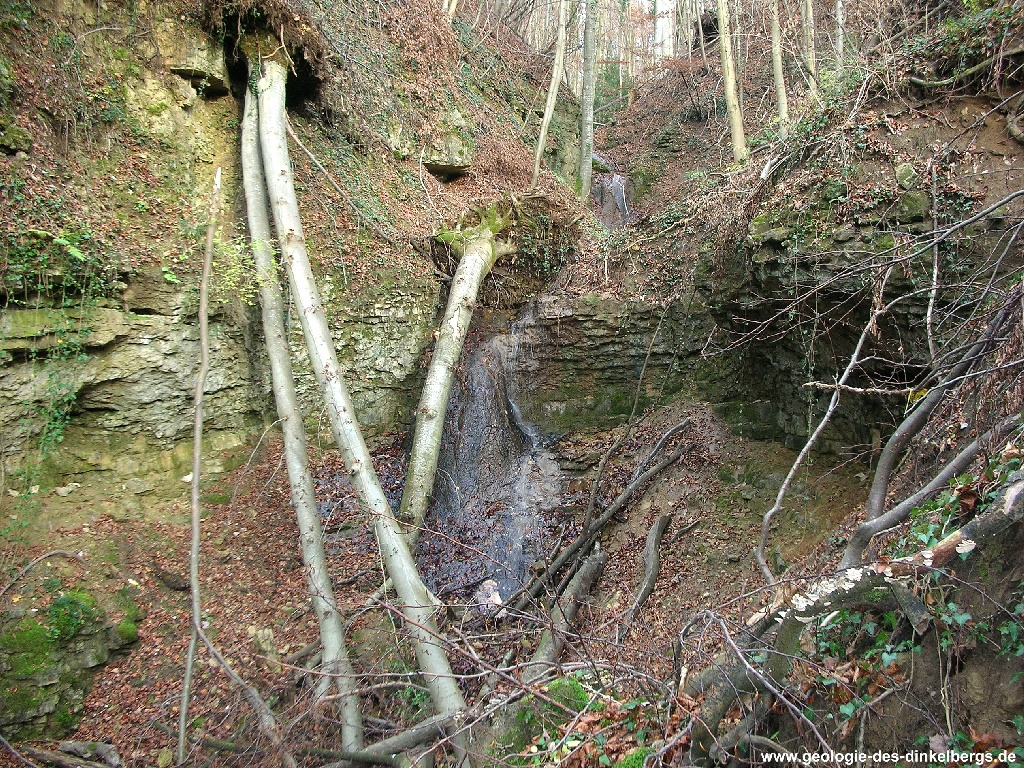 Der Ruschbach in Wyhlen fällt zwischen Rührberg und Wyhlen über einen kleinen Kalksinterwasserfall ins Tal.