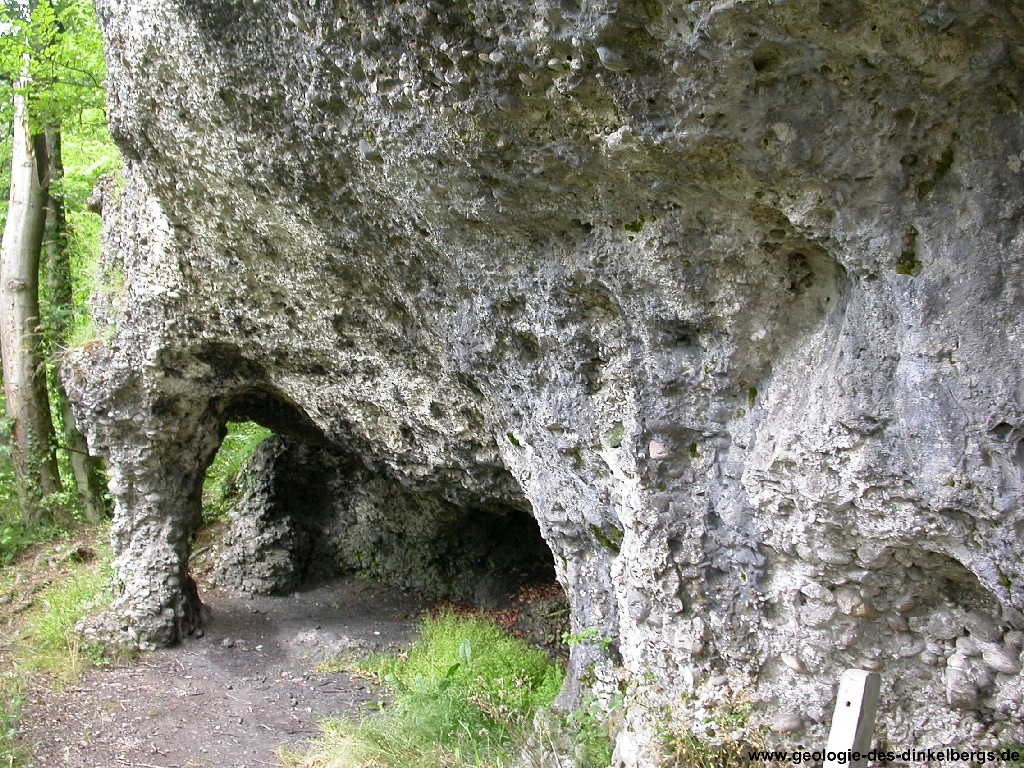 Hier liegt der Nagelfluh direkt auf dem Muschelkalk. Die dazwischenliegenden Schichten waren