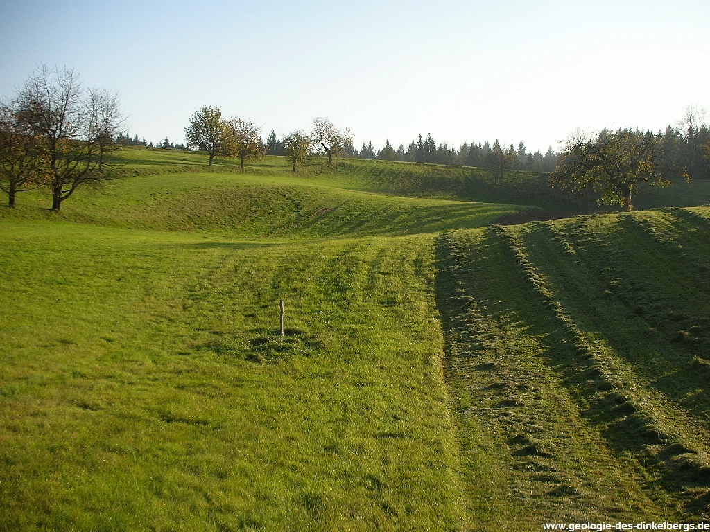 Dolinen etwa in einer Reihe. Das Moosloch findet sich auf der Straße von Karsau nach