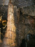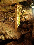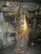 der Höhlendecke als Stalaktit und am Boden als Stalakmit ab. Treffen beide zusammen
