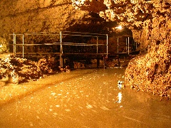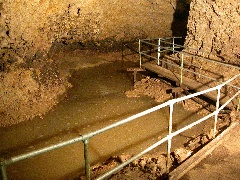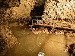 Lösungshöhle. Der Höhlenbach gräbt sich immer tiefer in das Gestein. Die Länge des