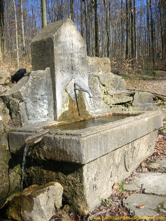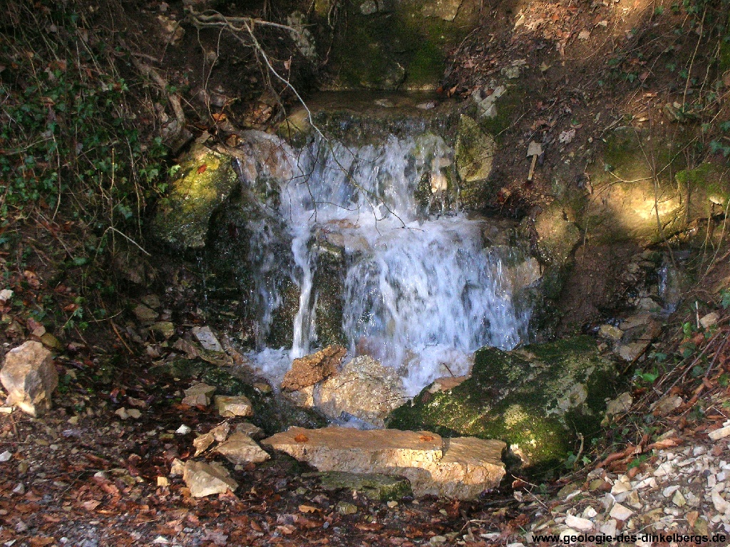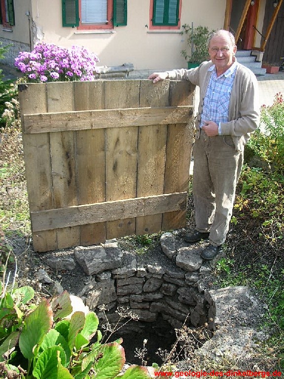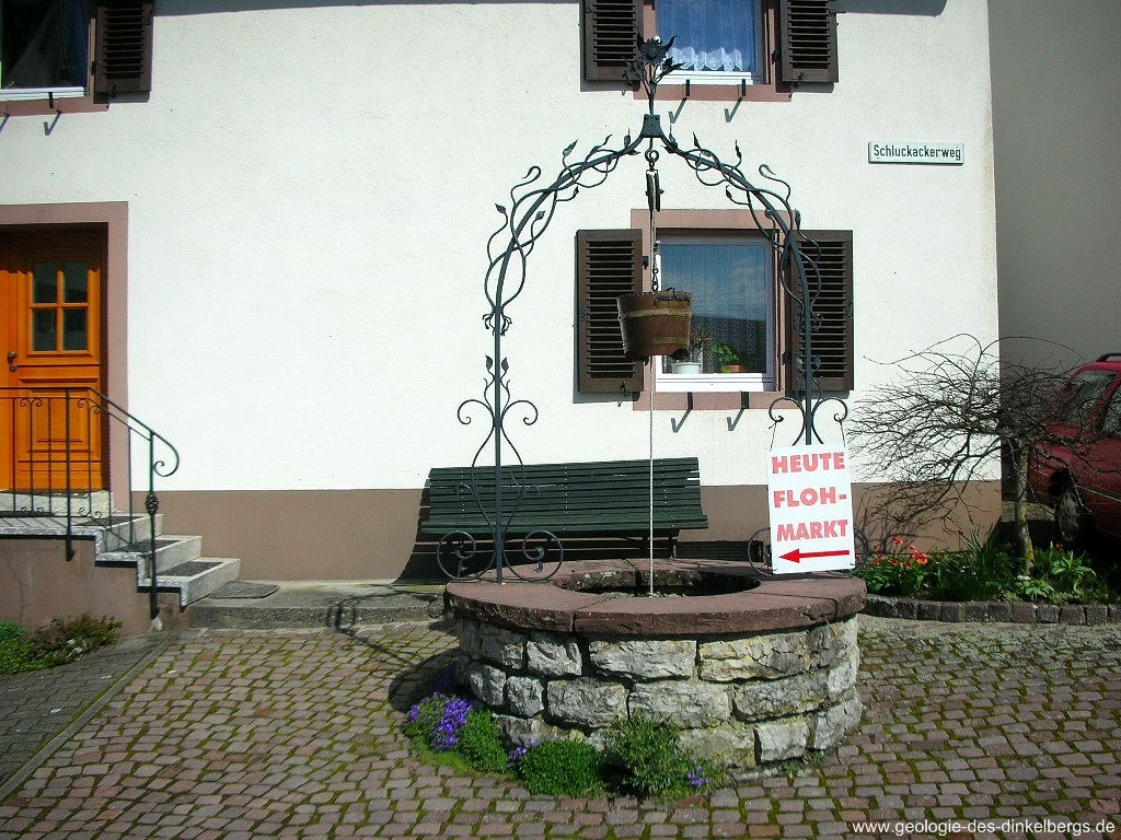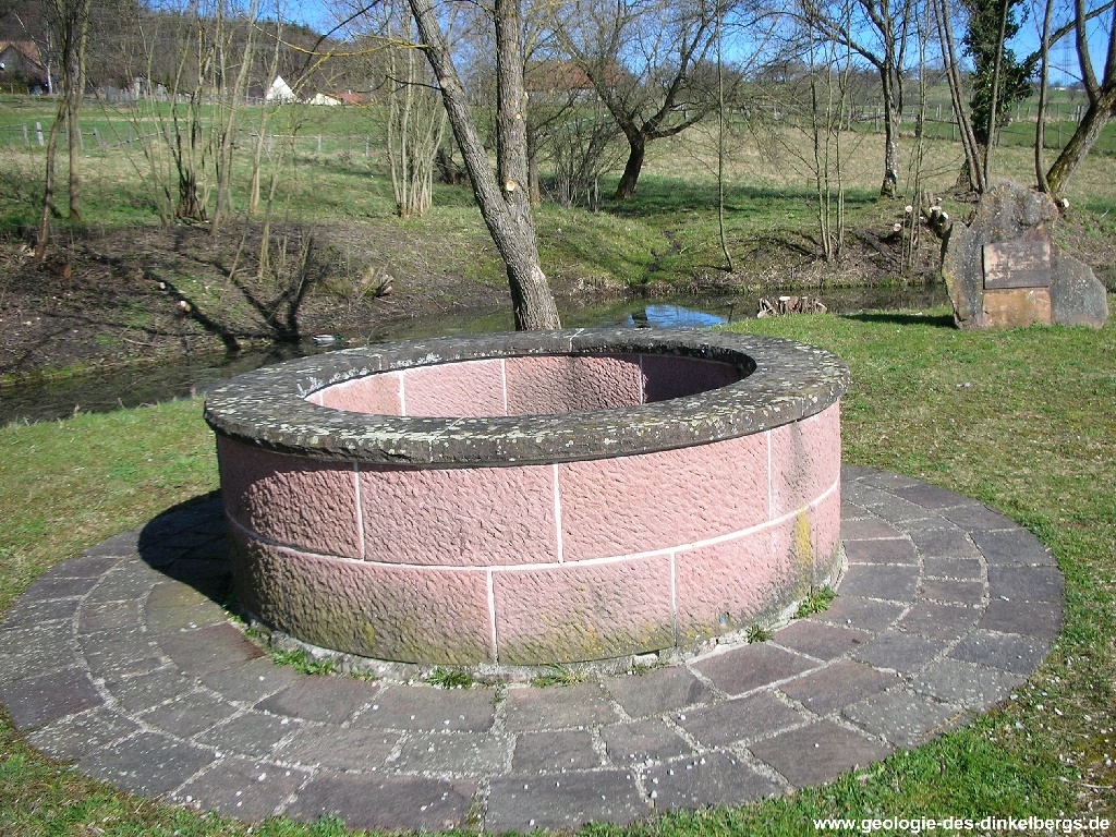 Brunnen durch den Kalk bis auf die wasserstauende Keuperschicht. Unterhalb