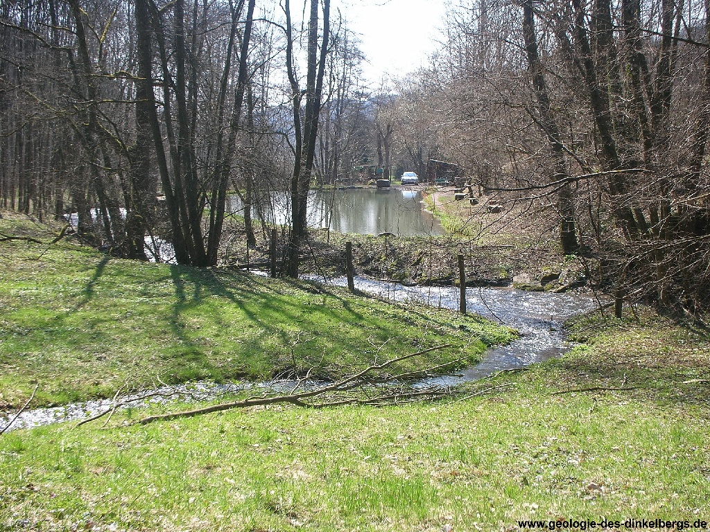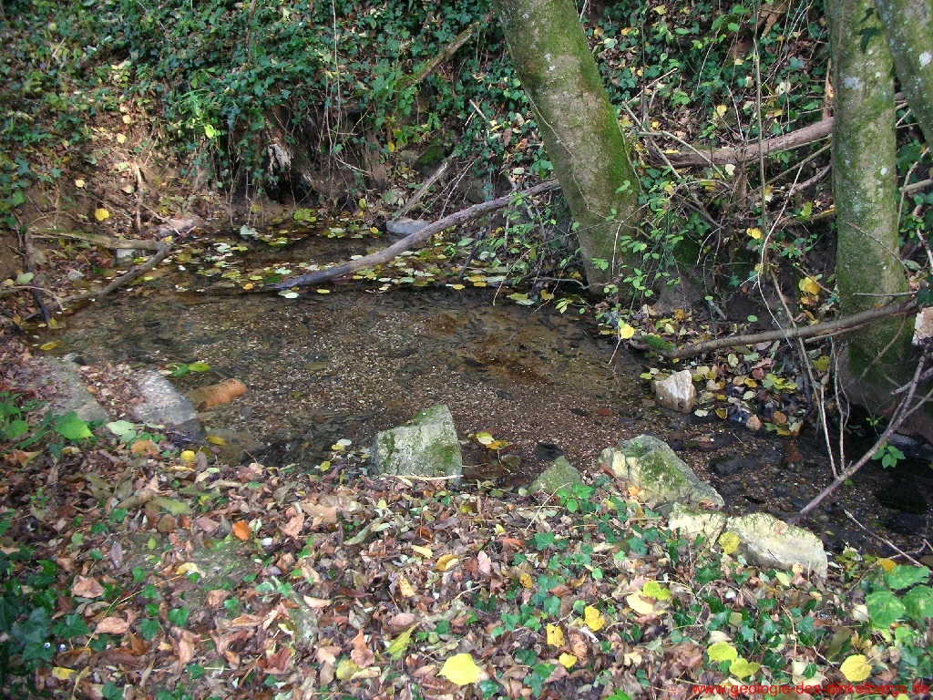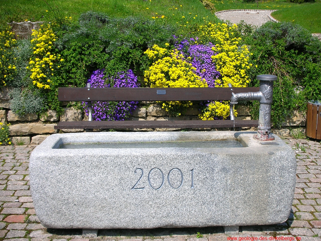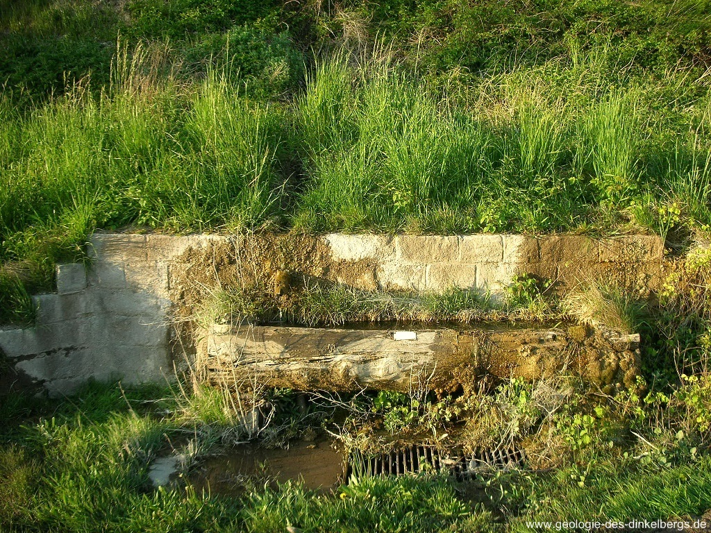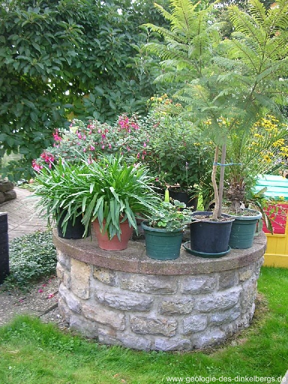 Brunnen durch den Kalk bis auf die wasserstauende Keuperschicht. Unterhalb