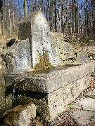 Im Hintergrund bei der Quelle ist ein Stein mit einem