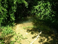 tritt erst unterhalb des Dorfes, nachdem das Wasser auf eine undurchlässige