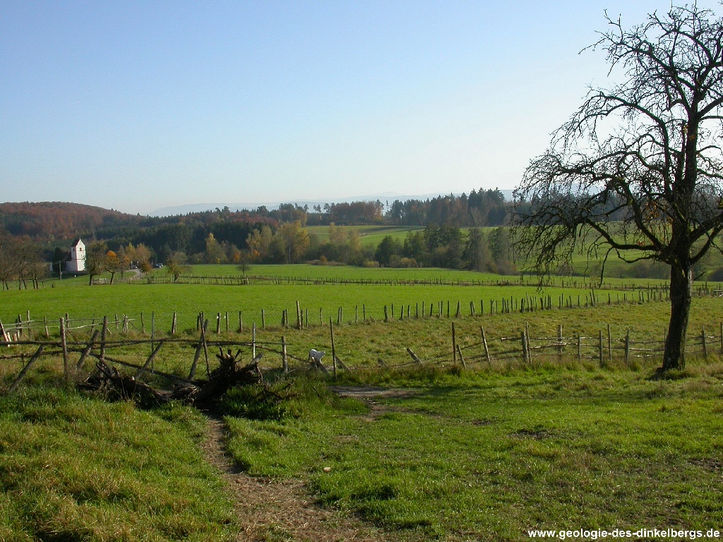 | Hunzelgraben mit Mauritiuskapelle bei Nordschwaben. Vom Quellgebiet